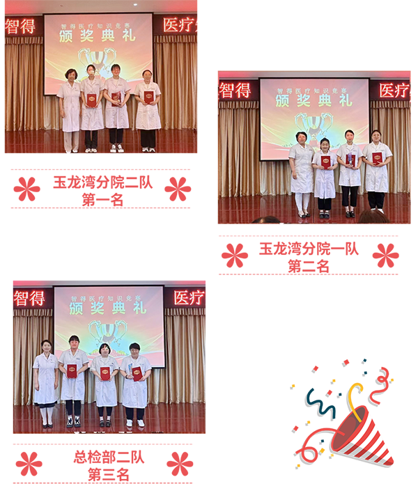 7月31日,智得醫(yī)療總檢部在十七年慶祝活動(dòng)中舉辦了智得體檢首次“醫(yī)療知識(shí)”競(jìng)賽活動(dòng),有四個(gè)代表隊(duì)共8支隊(duì)伍參加了激烈角逐,玉龍灣分院代表隊(duì)的兩支參賽隊(duì)包攬本次競(jìng)賽活動(dòng)的冠亞軍,總檢部有一支參賽隊(duì)獲得了第三名;她們用實(shí)力為這場(chǎng)“破冰之戰(zhàn)”寫下完美注腳!