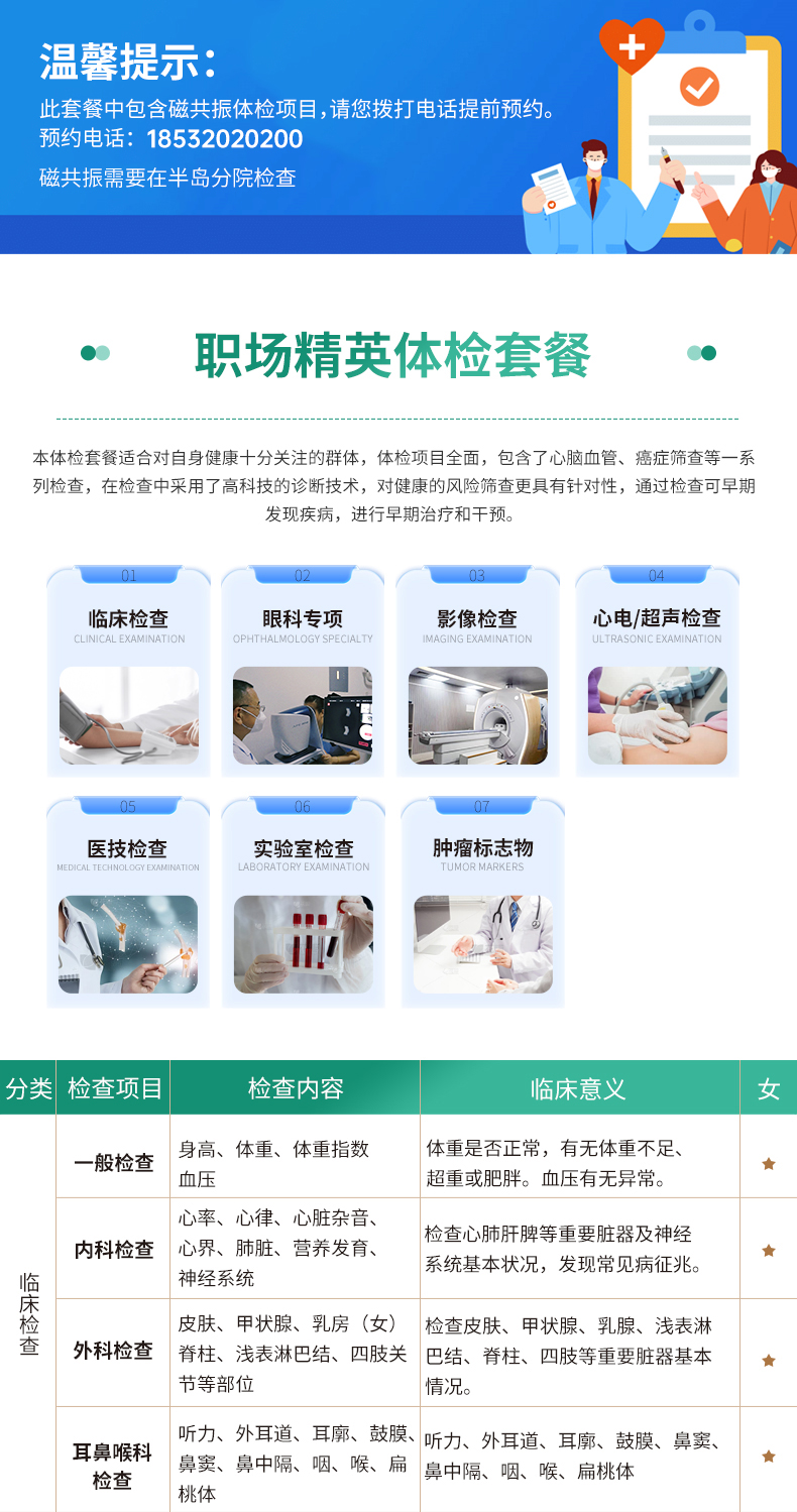 【女士】職場精英體檢套餐